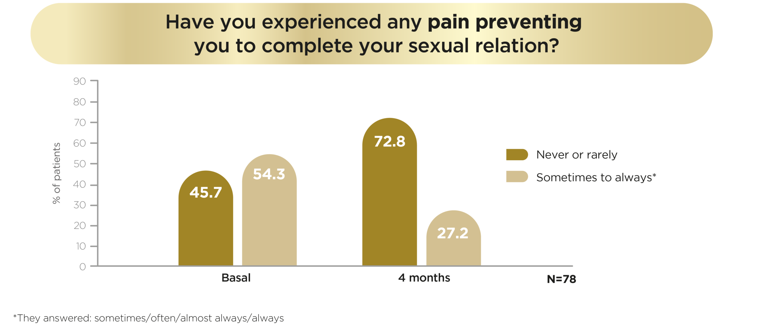 Of women experienced in pain relief during sexual relations (dyspareunia).