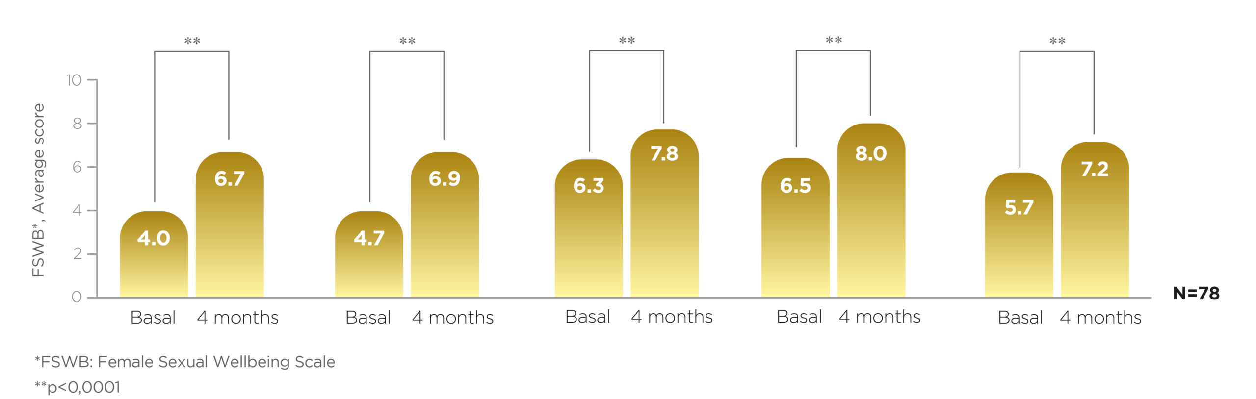 According to the trial’s results, 92% of patients improved their score in FSWB scale after 4 months, improving their sexual activity quality by using Libicare®.