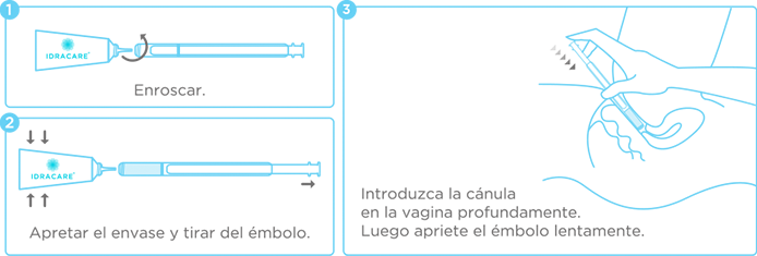 Se recomienda una aplicacion dos veces a la semana tal y como se indica en las ilustraciones, durante un minimo de 3 meses, aunque se puede usar de forma continua para mantener una correcta hidratacion vaginal, De esta forma se facilitara las relaciones sexuales reduciendo el dolor durante estas y permitiendo de igual manera el uso de preservativos durante su utilizacion